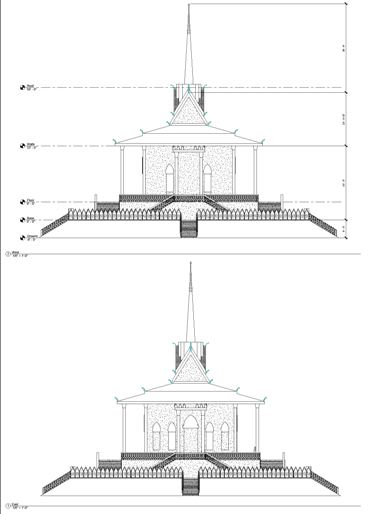 This design was created for the Cambodian Cultural Center in Lexington, NC. Metropolis Architecture and Shoaf Architect developed design drawings for a capital campaign to build the new temple on the site of the existing Cambodian Cultural Center. MA worked closely with building committee and resident Monk to interpret and define the architectural traditions embodied in traditional Cambodian Buddhist Temple designs.