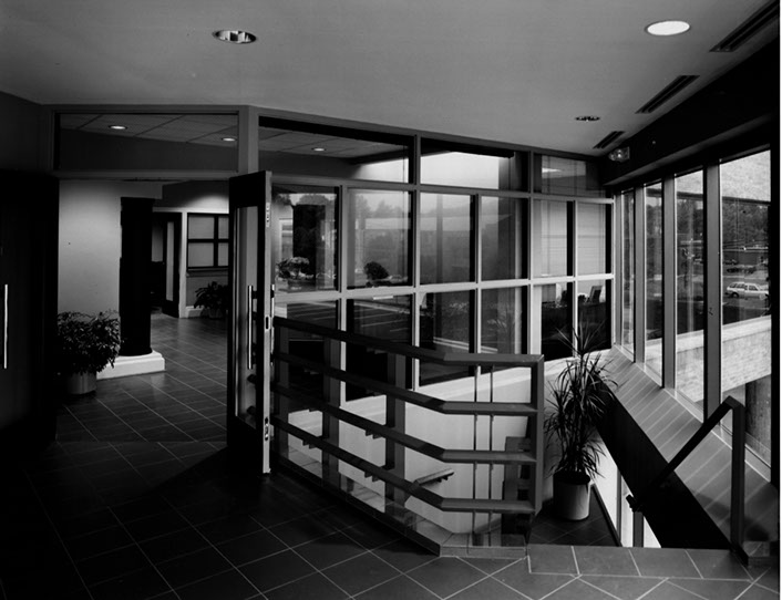 This 30,000 sf building was designed for private and open offices. It also included a tenant space for a small bank facility including a drive through teller.