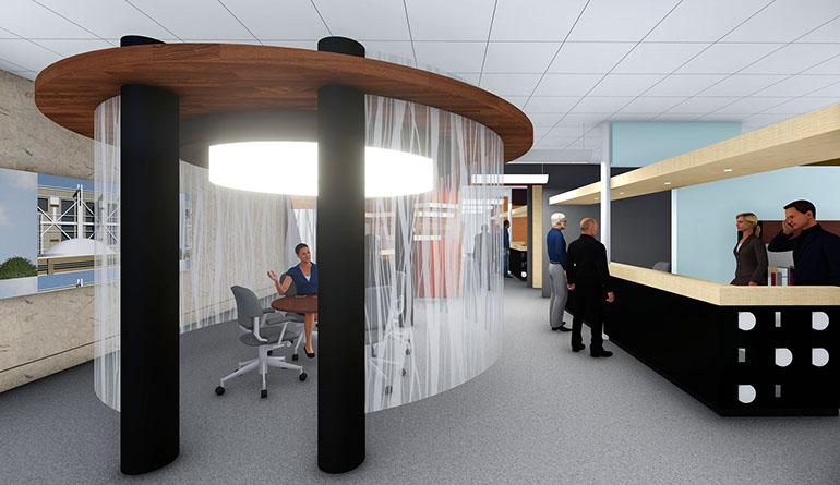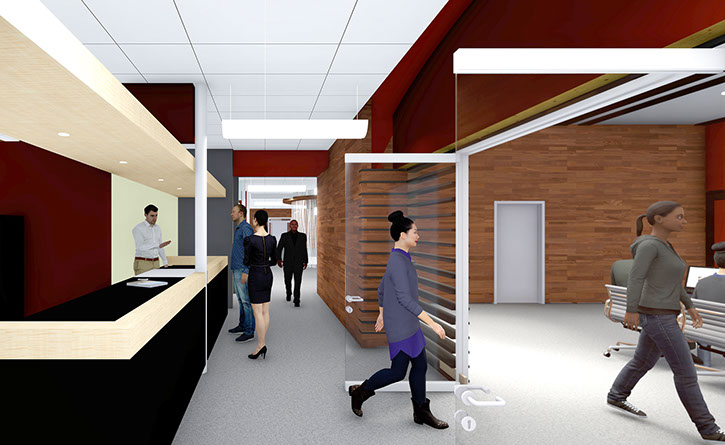 This project is a complete redesign of the interior offices for the design and construction department at WSSU. Key issues included the creation of a new reception area, the reorganization of public-private circulation patterns, significantly improved storage areas, collaborative work areas for project managers, and a dedicated large conference training room.